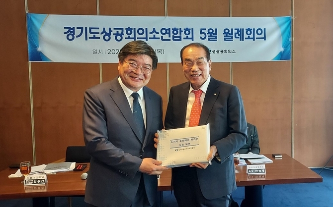 경기도 내 22개 상공회의소로 구성된 경기도상공회의소연합회는 12일 경기도 안성에서 간담회를 열고 김용진 비서실장을 만나 상공인들의 의견을 모은 ‘도지사후보에게 바라는 도정제언’을 전달했다.
