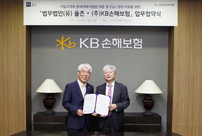 KB손보와 법무법인 율촌, 화우는 업무협약을 통해 기업고객의 경영전반에 대한 컨설팅을 제공함으로써 중대재해 사전 예방을 위한 기업의 ESG 경영을 지원하기로 했다.