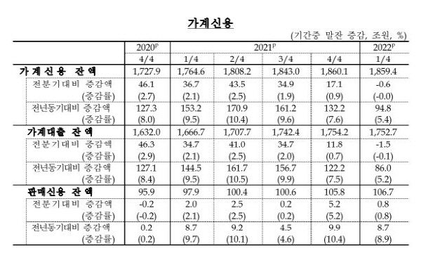 대출금리 상승 등에 따라 신용대출 중심의 기타대출이 큰 폭으로 줄어든 결과로 분석된다.