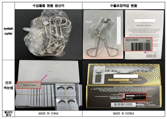 수입물품에 아무런 가공 없이 단순 포장 작업만 해 수출할 경우, 원산지는 중국 등 당초 수입국가로 표시해야 한다는 점을 알면서도 중국에서 수입한 미용용품에 해외바이어가 디자인 해준 ‘Made in Korea’ 표시 포장재를 국내 다른 업체를 통해 생산해 소매포장하는 수법을 썼다.