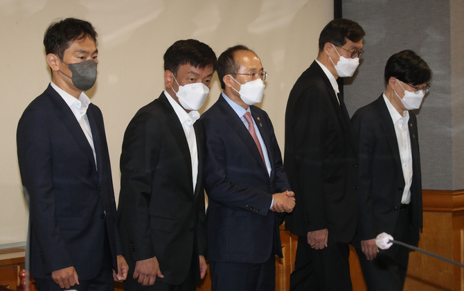 우선 물가 안정이 가장 시급한 현안이라는 공통 인식을 모았다며 총력 대응을 예고한 추 부총리는 "물가에 더욱 중점을 둔 통화정책 운용과 함께 공급 측면의 원가 부담 경감, 기대인플레이션 확산 방지 등 다각적 대응 노력을 강화해 나가겠다"고 강조했다.