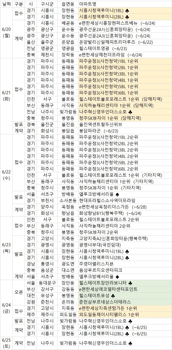 17일 부동산R114에 따르면 2022년 6월 넷째 주에는 전국 14개 단지(사전청약 포함)에서 총 6693가구(일반분양 5049가구)가 분양을 시작한다.