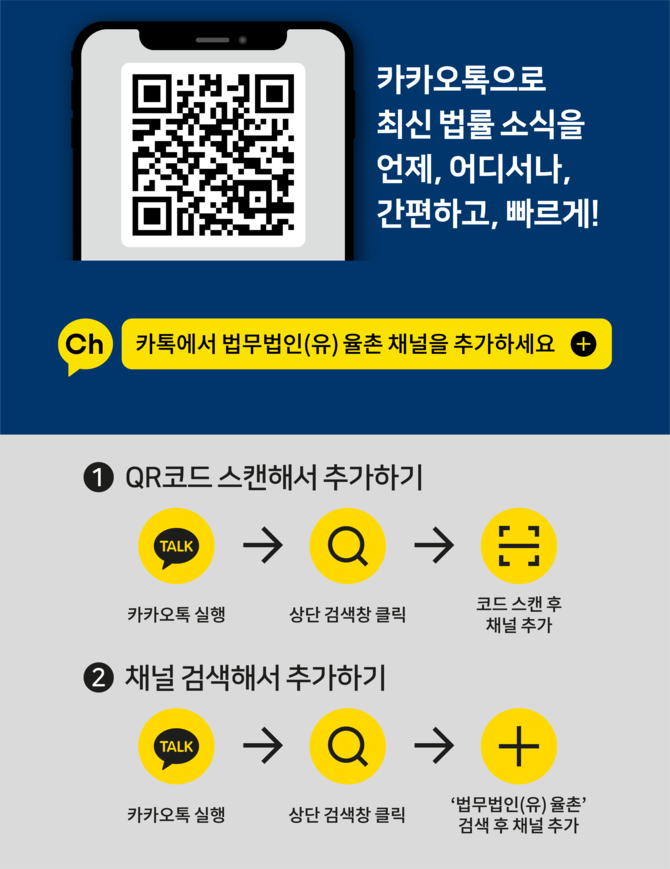 (조세금융신문=고승주 기자) 법무법인 율촌(대표변호사 강석훈)에서 최근 카카오톡 공식채널을 신설하고 빠른 법률정보를 찾는 고객들과의 접점확대에 나서고 있다.