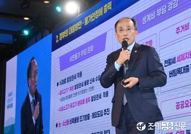 추 부총리는 "정부가 소고기, 닭고기, 돼지고기 등에 대해 관세를 한시적으로 0%까지 내려 육류 가격도 안정세를 찾아가고 장마 이후에 채소 작황도 정상적으로 가면 물가는 서서히 3분기, 4분기에 안정될 것"이라며 "다만 추석은 예년보다 이른 9월에 있어 '추석 물가'는 힘들 것"이라고 관측했다.
