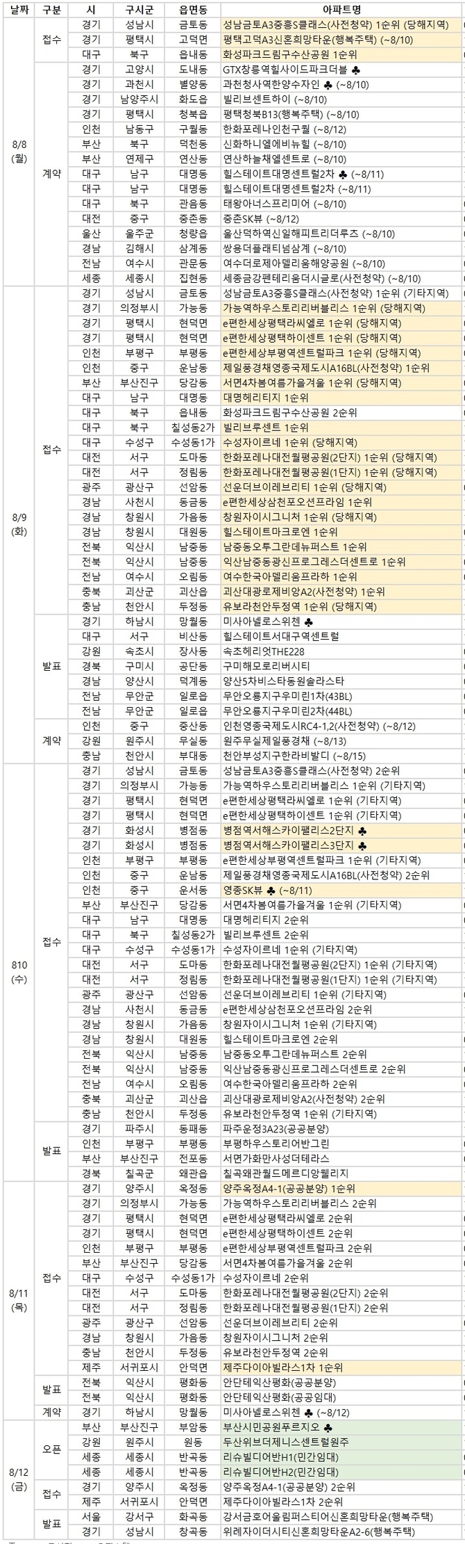 ◇ 청약 접수 단지