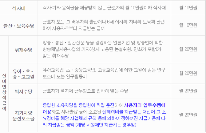 원래는 비과세 수당만큼 급여를 올리라는 취지지만, 실제 대부분의 회사들은 기본급을 쪼개 비과세 수당에 포함시킴으로써 회사 부담금을 줄이는데 사용한다.