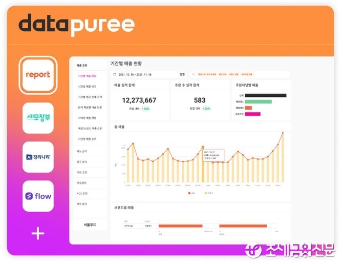 (조세금융신문=이상현 기자) 외식·배달 관련 데이터를 수집해 매출과 고객 반응을 통합 분석하는 데이터 솔루션 기업이 외식업 프랜차이즈 경영관리시스템을 개발, 프랜차이즈 본사 비즈니스 전 과정에서 발생하는 데이터를 브랜드 고객사가 소유할 수 있도록 제공한다.