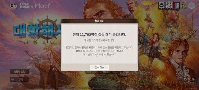 23일 라인게임즈는 신작 오픈월드 다중접속역할수행게임(MMORPG) ‘대항해시대 오리진’의 정식 서비스를 오전 10시에 시작했다. 이후 라인게임즈는 서비스 시작 30분만에 서버 오류로 인한 사유로 정식 서비스 시간을 12시 30분으로 변경했다.