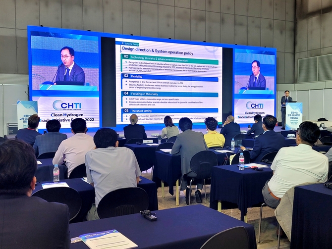 송한호 서울대 교수는 1일 경기 고양시 킨텍스에서 열린 ‘제1회 청정수소 교역 이니셔티브(CHTI) 국제포럼’에서 한국형 청정수소 인증제 설계방향 초안에 대해 발표하며 이같이 말했다.