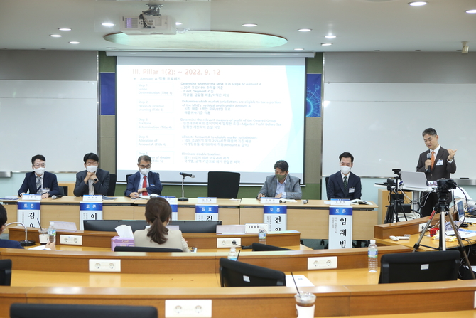 세미나는 1‧2세션으로 나눠 진행됐으며 1세션에서 ‘다국적 플랫폼 기업의 소비지별 법인세 과세권 배분(필라1)’을, 2세션에서 ‘연결기준 연 매출 1조원 이상 다국적 기업의 15% 글로벌 최저한세 적용(필라2)’을 각각 주제로 다뤘다.