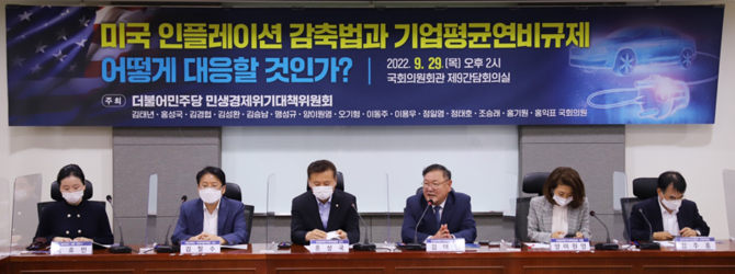 앞서 민주당 민생경제위기대책위원회는 '미국 인플레이션 감축법과 기업평균연비규제, 어떻게 할 것인가?'를 주제로 토론회를 열고, 최근 문제가 된 전기차 보조금 혜택 문제 외에도 IRA법이 우리 경제와 산업에 어떤 영향을 미칠지 선제적으로 점검하고, 대응책을 주문했다.