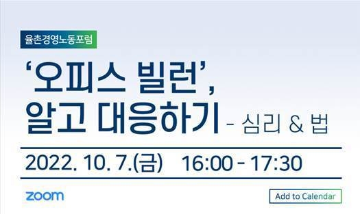 둘의 대담은 내달 7일 오후 4시 ‘오피스 빌런, 알고 대응하기- 심리 & 법’ 법무법인 율촌 웨비나를 통해 진행되며, 참가는 무료이며, 신청은 5일까지 율촌 홈페이지에서 할 수 있다.