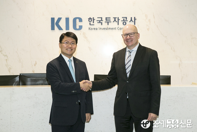 진승호 KIC 사장은 5일 오후 서울 중구 KIC 본사에서 데이비드 앳킨(David Atkin) PRI 최고경영자(CEO)를 만나 KIC의 UN PRI 가입을 위해 서로 협력하기로 합의했다고 밝혔다.