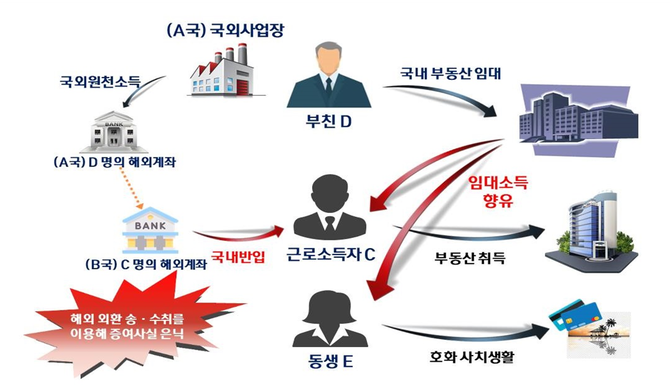 가짜 해외이주로 수십억을 증여하거나, 자기 명의 해외계좌로 부모 돈을 받아 다시 국내 계좌로 옮겨 물 쓰듯 쓰고, 소득신고는 미미한 데도 호화생활을 누리는 일가들도 당국에 포착됐다.