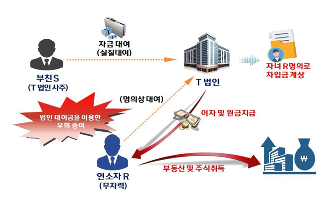 연소자 R은 T 법인(부친 S가 사주)에 수십억원의 대여금이 설정되어 있으며, 그 대가로 고액의 이자를 수취하고 원금을 받은 것으로 드러났다.