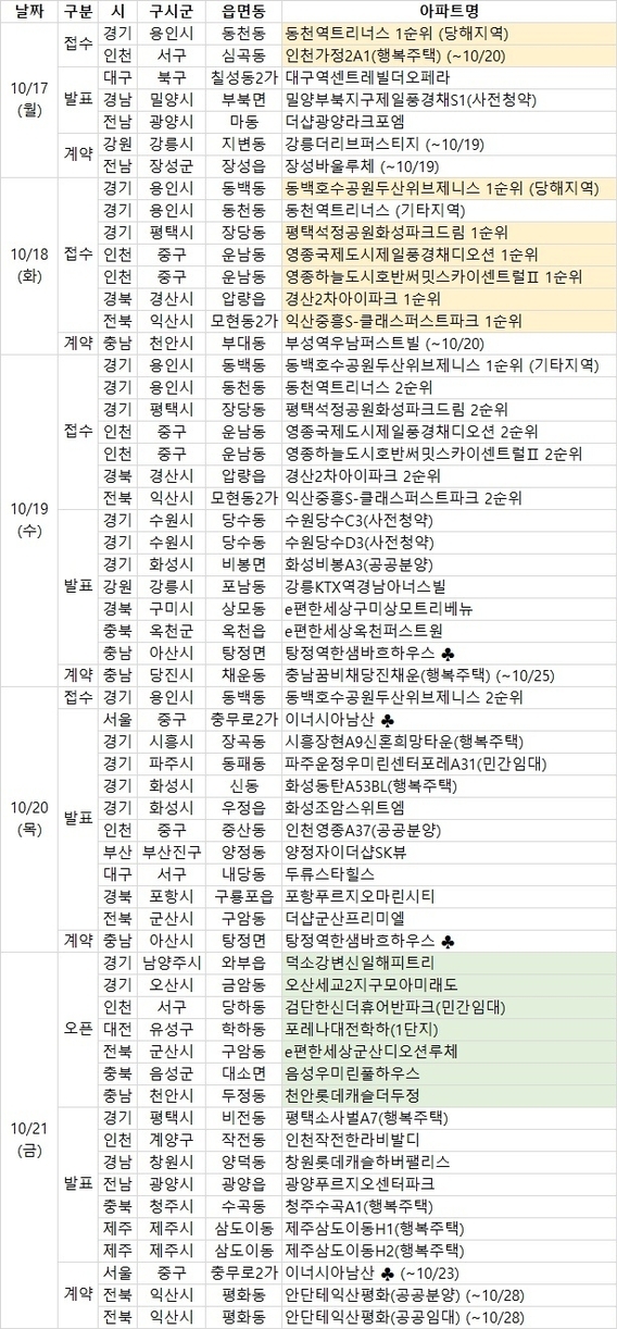 14일 부동산R114에 따르면 2022년 10월 셋째 주에는 전국 8개 단지에서 총 5110가구(일반분양 4213가구)가 분양을 시작한다.