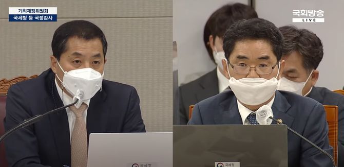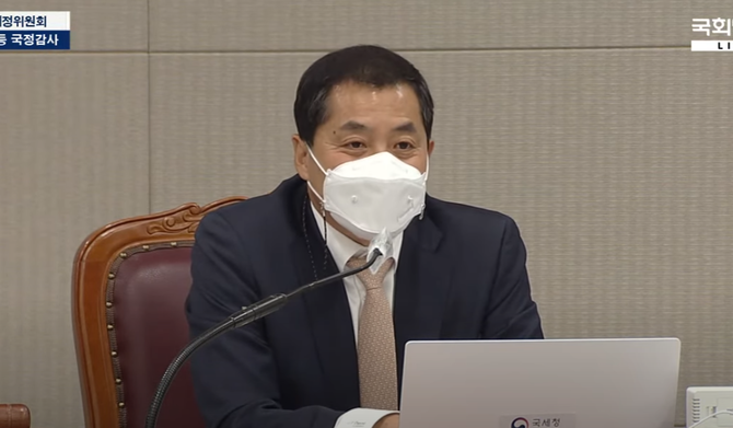 김창기 국세청장은 ‘개별 납세자 정보에 대해 말씀드릴 수 없다’라는 말만 반복하며, 야당 의원들의 거듭된 질의를 끊질 못하자 국민의힘 박대출 기획재정위원장이 웃으며 정리에 나섰다.