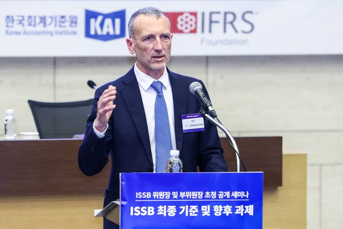 엠마뉴엘 파베르 ISSB 위원장과 수 로이드 ISSB 부위원장은 26일 한국회계기준원(원장 김의형)과 국제회계기준재단(IFRS 재단)이 서울에서 공동으로 개최한 공개세미나에서 기준 준수에 어려움을 표방하는 국내 기업인들의 우려에 이같이 답했다.