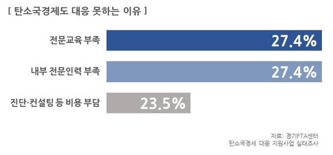 경기도와 경기지역 FTA활용지원센터(이하 경기FTA센터)는 ‘환경·사회·지배구조(ESG)경영 및 탄소국경세’ 교육 참여기업을 대상으로 탄소국경세 준비현황에 대한 실태조사를 실시한 결과 이같이 나타났다고 9일 밝혔다.