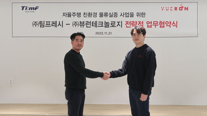 (조세금융신문=최주현 기자) 자율주행 솔루션 기업 뷰런테크놀로지가 콜드체인 전문기업 팀프레시와 자율주행 친환경 식자재 배송 실증 협약을 맺었다.