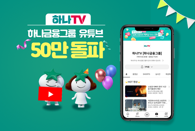 (조세금융신문=구재회 기자) 하나금융그룹은 그룹의 공식 유튜브 채널인 ‘하나TV’가 본격적으로 운영을 시작한지 2년 10개월 만에 구독자 50만 명을 돌파 했다고 밝혔다고 24일 밝혔다.