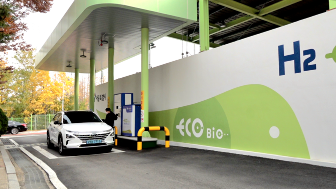 우리가 이 바이오가스 정제 과정에서 메탄 함량을 95% 이상 까지 늘리도록 하는 기술을 개발했다. 이를 통해 2009년부터 천연가스 차량에 바이오가스를 공급하기 시작했다. 그런데 바이오가스 자원화 사업에 있어서 우리나 라 정책이 워낙 미비하다보니 지원 정책이 없었다. 2014년부터 천연가스 가격이 계속 떨어지다보니 시 장에서 경쟁력을 확보하기 힘들었다. 그래서 결국 2016년 바이오가스 사업을 접었다가, 새롭게 관심을 가지게 된 것이 바로 수소였다.