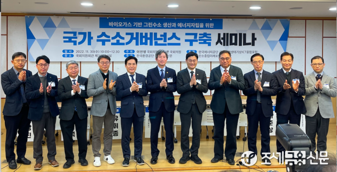 국회 과학기술정보통신위원회 소속 이인영 의원과 이정문 의원이 공동 개최한 이날 세미나 두 번째 주제발표를 맡은 이한우 단장은 “수소 국내 조달 목표를 무조건 25%로 확정해야 하며, 해외 의존도가 전혀 없으면서 연간 1100만톤이 배출되는 하수슬러지와 음식물, 가축분뇨 등 유기성폐기물, 연간 1000만톤이 배출되는 폐플라스틱 처리비용과정에서 수소를 추출하는 기술이 에너지자립 관점에서 매우 중요하다”고 밝혔다. 이 단장은 특히 “한국이 에너지를 들여오는 모든 경로가 미중 전략적 대립 지대”라고 강조했다.