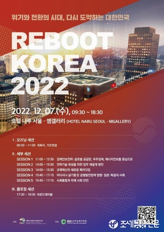 KDI국제정책대학원은 이날 서울 나루 엠갤러리 호텔에서 경제인문사회연구회(경인사연) 주최, KDI국제정책대학원 주관으로 '리부트 코리아 2022' 세미나가 열렸다고 밝혔다.