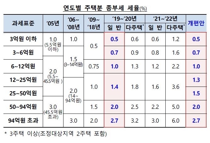 종부세법 민주당은 2주택부터는 부동산 투기수요라고 보고 중과세율을 적용했었다.