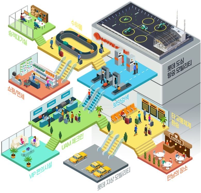 롯데건설은 롯데그룹이 보유한 유통, 관광 인프라 시설의 주요 거점과 연계해 안전하게 UAM을 이용할 수 있도록 차별화된 버티포트를 구축하고, 기존 교통망와 연계한 UAM 서비스를 제공할 계획이다.