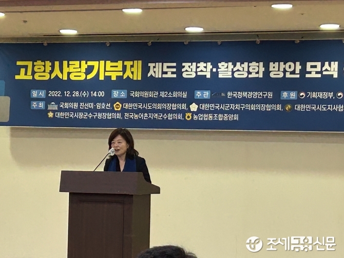 토론회를 주최한 진선미 의원은 “문재인정부 100대 국정과제로 채택돼 2023년 시행을 앞둔 고향사랑기부제의 취지와 목적을 충분히 알려 충실히 시행되도록 관계기관이 합심해야 한다”며 “이 제도가 지자체 간 혁신 경쟁을 촉진하고 기부자에게 확실한 혜택을 제공하며 농업과 상업 등 지역경제에 활력을 불어넣는 성공사례가 되도록 부족함 없이 지원하겠다”고 밝혔다.