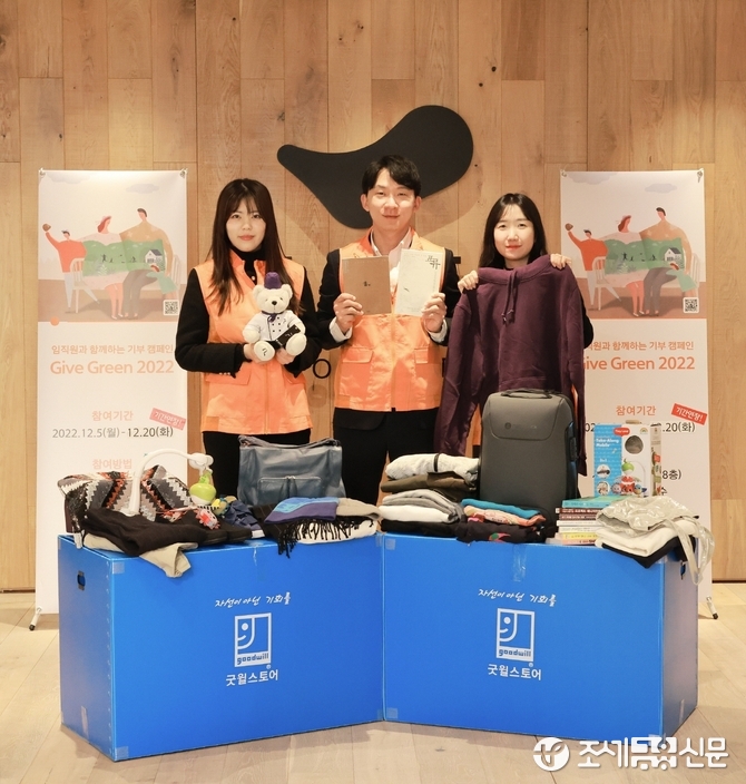 (조세금융신문=송기현 기자) 한화생명은 28일 임직원이 참여하는 '기브그린(Give Green)' 캠페인 벌여 집에 두고 쓰지 않는 의류, 잡화, 가전 등 물품 5천800여점을 장애인 직업재활시설 '굿윌스토어'에 전달했다고 밝혔다.