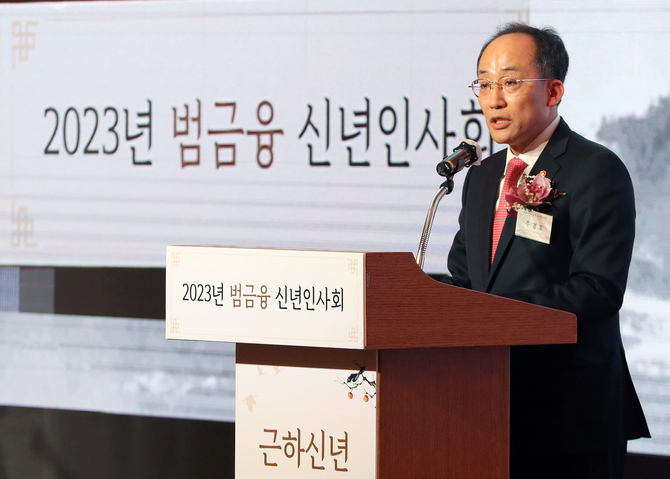 먼저 추경호 부총리는 금융권에 감사말을 전했다. 그간 복합위기 상황에서 취약계층을 포용해주고 금융시장을 뒷받침해준 것에 대한 치하의 의미였다. 동시에 올해에도 전년도와 같은 위기 상황이 지속될 수 있음을 지적하며 꾸준한 지원을 당부했다.