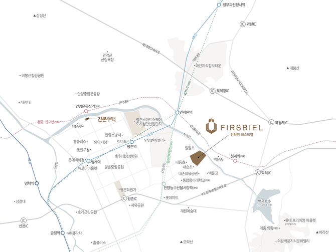 우선 단지 도보 거리에 내손초, 내동초, 백운중, 백운고 등 초·중·고교가 위치한 학세권 단지로 평촌학원가, 벌말도서관 등과도 가까워 교육환경이 우수하다는 게 컨소시엄의 설명이다. 또 단지 앞 학의천을 비롯해 포일공원, 내손체육공원과 인접했다.