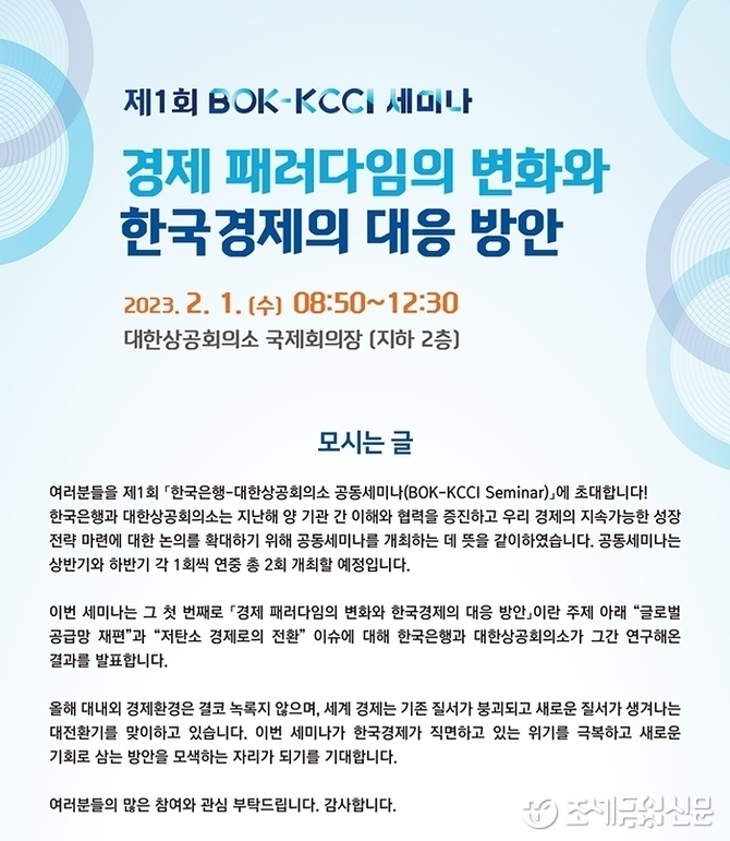 한편 대한상의와 한은은 앞으로 매년 상반기와 하반기 각 1회씩 연중 총 2회 공동세미나를 정례화해 개최할 예정이라고 전했다.