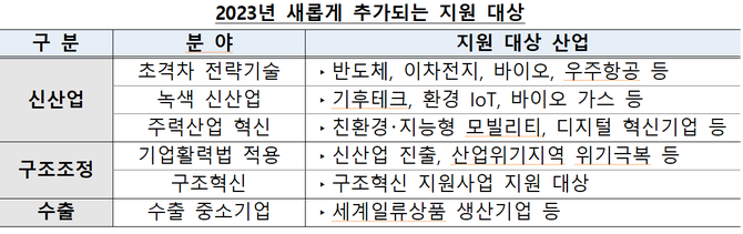 반도체, 이차전지 등 초격차 전략기술 분야는 물론 녹색 신산업, 모빌리티 등 혁신성장 기업, 신산업 분야 중소기업도 세정지원 대상에 포함된다.