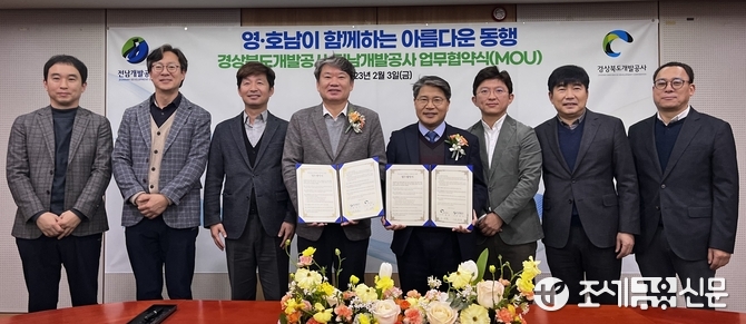 (조세금융신문=송기현 기자) 경북도개발공사는 3일 전남개발공사와 사회공헌사업 확산을 위한 '영·호남이 함께하는 아름다운 동행' 협약을 맺었다.