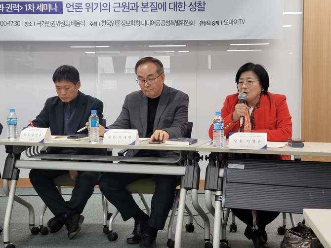 이영음 방송통신대 교수는 “국내 언론의 신뢰도가 2021년에는 상당히 상승했지만, 지난해에는 46개 국가 중 40위로 하락했다”며 우려했다. 이 교수는 “언론 신뢰의 상실 원인은 언론의 정파성과 전문성, 자본 권력에 약한 점”이라고 꼬집으면서도 “독자 성향에 따라 신뢰도 평가에 영향을 미치는 경향이 있다”고 말했다.
