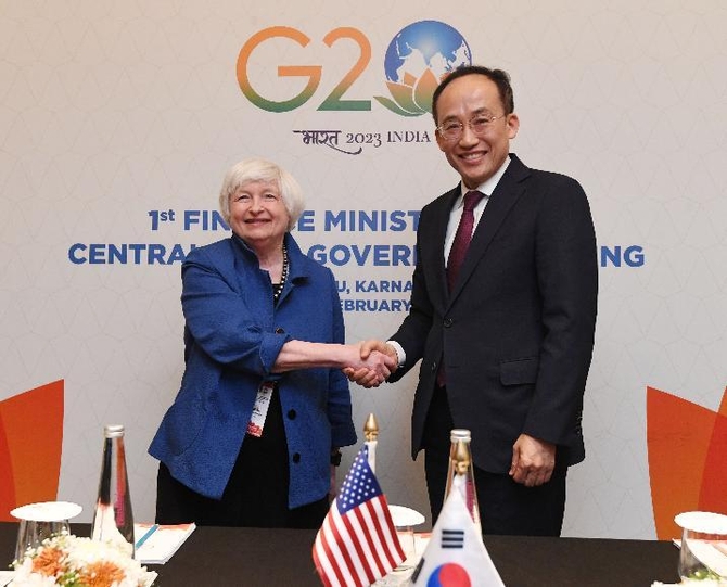 (조세금융신문=고승주 기자) 추경호 부총리 겸 기획재정부 장관이 현지시간 25일 인도 벵갈루루에서 재닛 옐런 미국 재무장관을 만나 미국이 내달 발표할 인플레이션 감축법(IRA) 세액공제에 담길 핵심광물·배터리 부품 가이던스(하위 규정)에 대해 한국 기업에 더 명확한 정보를 제공해주는데 지속적인 관심을 보여달라고 요청했다.