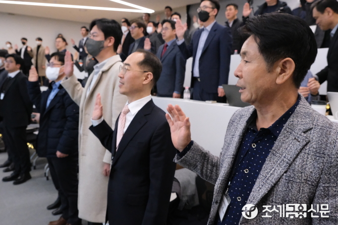 이날 발기인 대회는 대학 강의실과 비슷한 형태의 계단식 세미나실에서 진행됐다. 발기인대회에 참석한 100명의 관세사들은 한휘선 관세사의 발기인 대표 선서를 따라 외치며 마음과 뜻을 모았다.