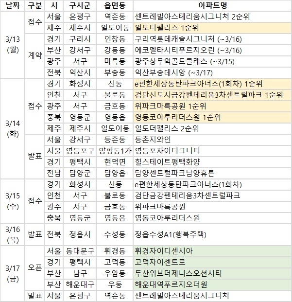 10일 부동산R114에 따르면 2023년 3월 셋째 주에는 전국 5개 단지 총 3390가구(일반분양 2418가구)가 분양을 시작한다.