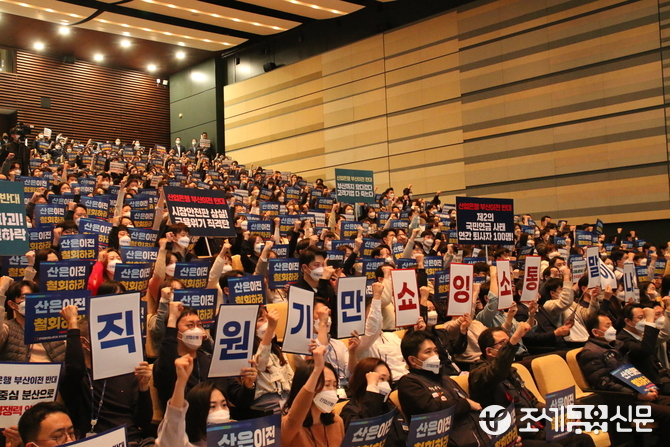 (조세금융신문=진민경 기자) 산업은행이 부산 이전 추진 관련 내부 직원 설명회를 개최하려 했지만 직원들 반발로 파행했다. 산은 노사간 부산 이전을 두고 입장차를 좁히지 못한채 파열음이 지속되고 있는 양상이다.
