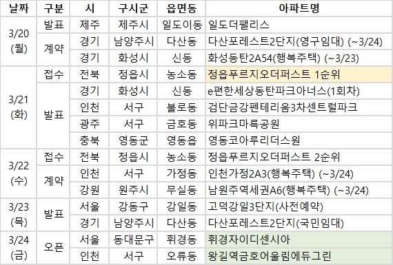 17일 부동산R114에 따르면 2023년 3월 넷째 주에는 전국 1개 단지 총 707가구(일반분양 707가구)가 분양을 시작한다.