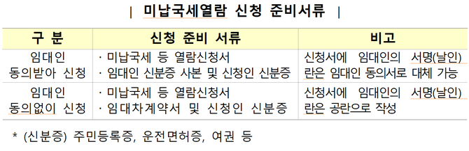 임대인 미납국세현황을 열람하려면, 임차인은 임대차계약서 등을 가지고 가까운 세무서 민원봉사실을 방문해 열람 신청하면 된다.