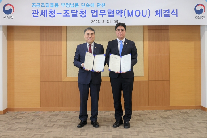 관세청(청장 윤태식)과 조달청(청장 이종욱)은 31일 서울본부세관에서 ‘공공조달물품 부정납품 단속에 관한 MOU’를 체결했다.