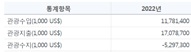 한국은 국내 관광보다 해외관광으로 적자를 보내는 나라로서 최근 외국인 관광객 숫자가 늘어나고는 있으나, 올해는 코로나19 방역 제한이 풀리고 있어 과거 사례를 볼 때 여행수지 적자 확대가 전망되는 상황이다.