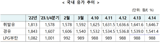 기재부는 서민경제의 부담 완화를 최우선으로 고려한 조치로 최근 산유국의 감산 조치로 국내 유가가 오르고 있다는 점을 고려했다고 설명했다.