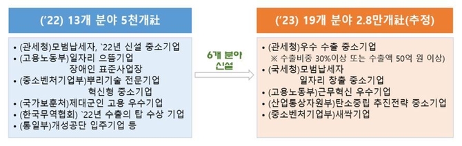 특히 이번 관세조사 유예 대상에는 부처 간 협업 활성화 차원에서 타 부처 선정 우수기업 및 정책적인 우대 분야가 대폭 반영돼 총 14개 분야(5개 신설), 2만여 개 기업이 이에 해당될 것으로 예상됐다.