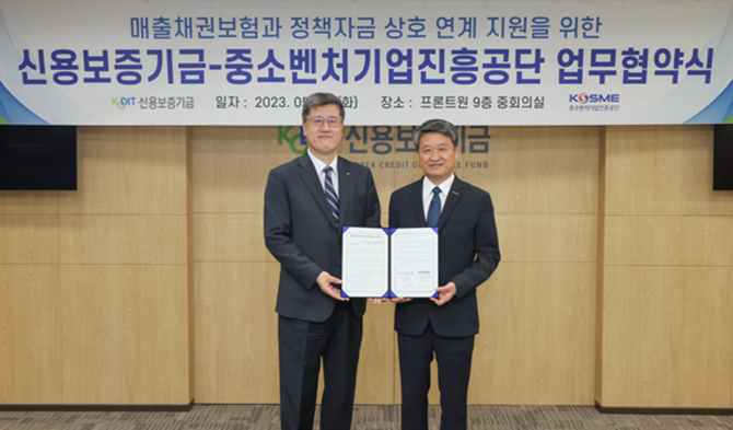 (조세금융신문=김종태 기자) 신용보증기금은 30일 중소벤처기업진흥공단과 '매출채권보험과 정책자금 상호 연계지원을 위한 업무협약'을 체결했다고 밝혔다.