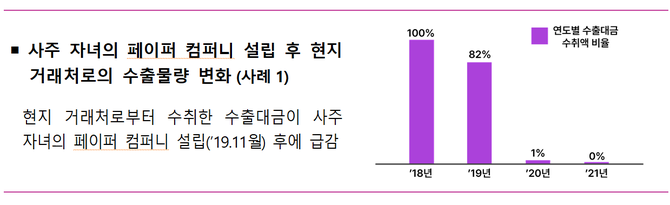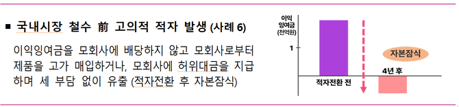 사주의 사적 이익을 위해 국외 특수관계자에게 상품, 제조기술, 지식재산권 등을 시가보다 저가로 넘기면서 해외에 부당한 이익을 쌓은 것으로 나타났다.